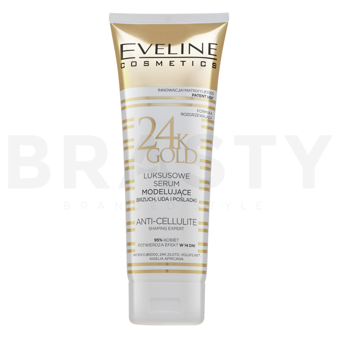 Eveline Slim Therapy 24k Gold modellező szérum egy innovatív készítmény, amelyet kifejezetten azoknak a nőknek terveztek, akik feszesebb és simább bőrt szeretnének a has, combok és fenék területén. Ez a luxus termék a Slim Therapy sorozat részeként ötvözi a fejlett technológiát a 24 karátos arany jótékony hatásaival, amely segít a bőr feszesítésében és simításában. Az Eveline, a bőrápolás és testápolás területén elismert márka, ezt a terméket a bőr regenerálására és táplálására fókuszáló portfóliójának részeként kínálja.